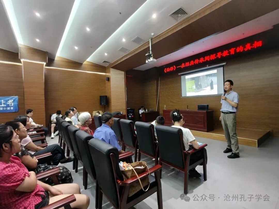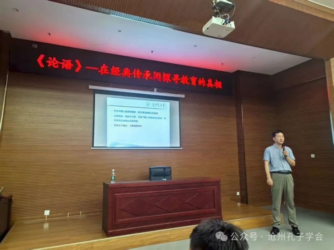 沧州孔子学会会长孔繁义教授担任主讲嘉宾。活动伊始,孔繁义教授以学者的深厚视角,开启了对《论语》中教育智慧的深度剖析之旅。他娓娓道来,从孔子的生平轶事讲起,让大家深刻感受到孔子这位伟大教育家的人格魅力和教育情怀。在解读《论语》篇章时,孔教授妙语连珠。他结合当下的教育现状,对 “学而不思则罔,思而不学则殆” 等经典语句进行了生动阐释。他指出,在现代教育中,不少学生只注重知识的机械记忆,却缺乏深入思考,这正是对孔子教育理念的背离。而家长在引导孩子学习时,也往往忽视了思考能力的培养。他的讲解深入浅出,让在场听众频频点头,恍然大悟。
