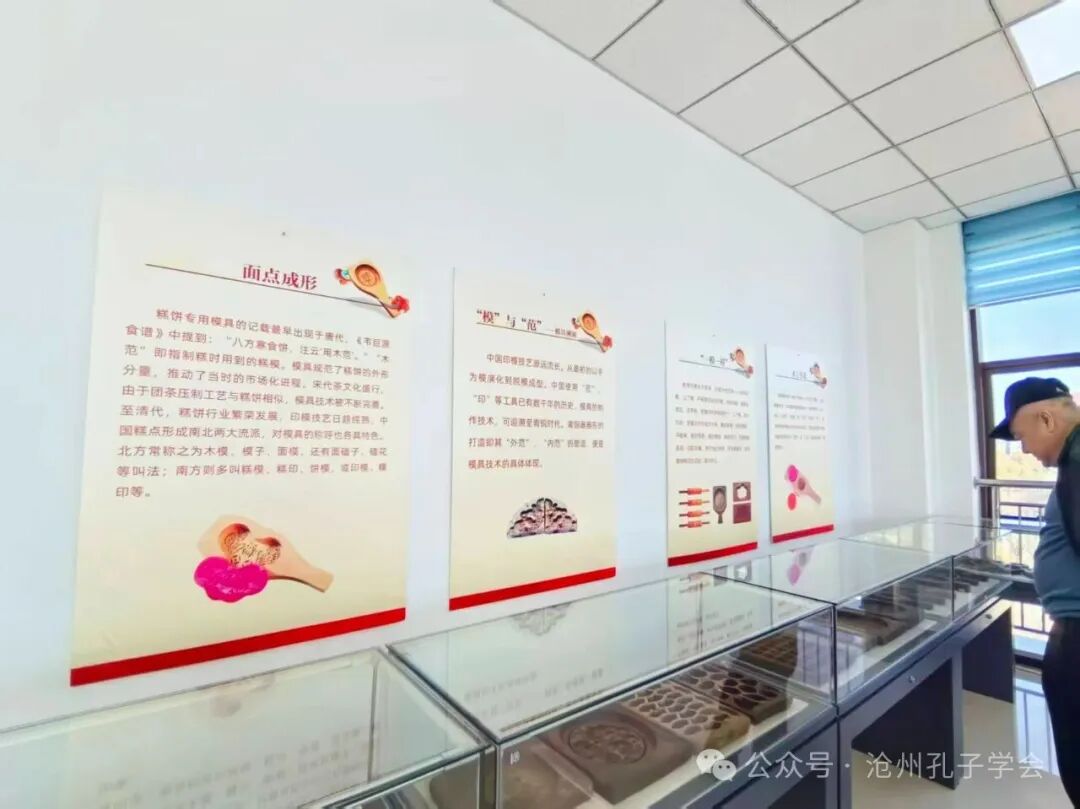 孔繁义一行先后参观了海兴县博物馆中“历史文化”“非遗文化”“民俗文化”“古井文化”“红色文化”“糕饼模具”等特色展厅。值得一提的是,孔繁义会长多年珍藏的糕饼模具正在海兴县博物馆“糕饼模具”展厅中展出。这些模具造型多样、纹饰精美,展现出了民间工艺与礼俗生活的深度融合,反映出人民的意愿情感与精神寄托。